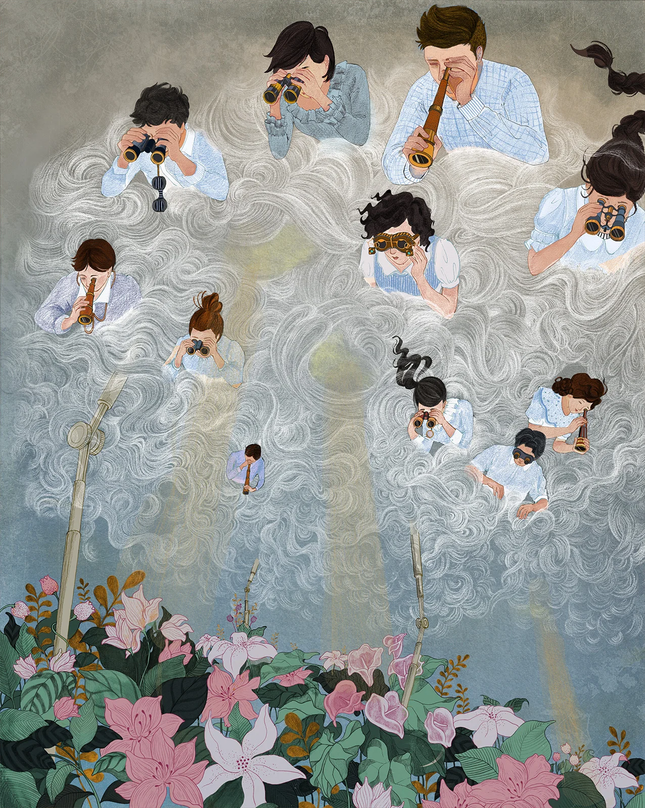 Nothing of the city Baucis, hidden behind clouds, touches the ground except its long flamingo legs. But the inhabitants examine the earth leaf by leaf with their spyglasses aimed downwards contemplating with fascination their own absence.